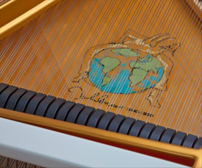 IMAGINE系列纪念印章/乐谱 IMAGINE系列的每架钢琴都是一件特殊的艺术品,都有一个由列侬的日语签名、产品名称和序列号组成的纪念印章。在钢琴内部的铸铁板上,印有《IMAGINE》起始一段的乐谱作为装饰,在这里,旋律将展现生命。